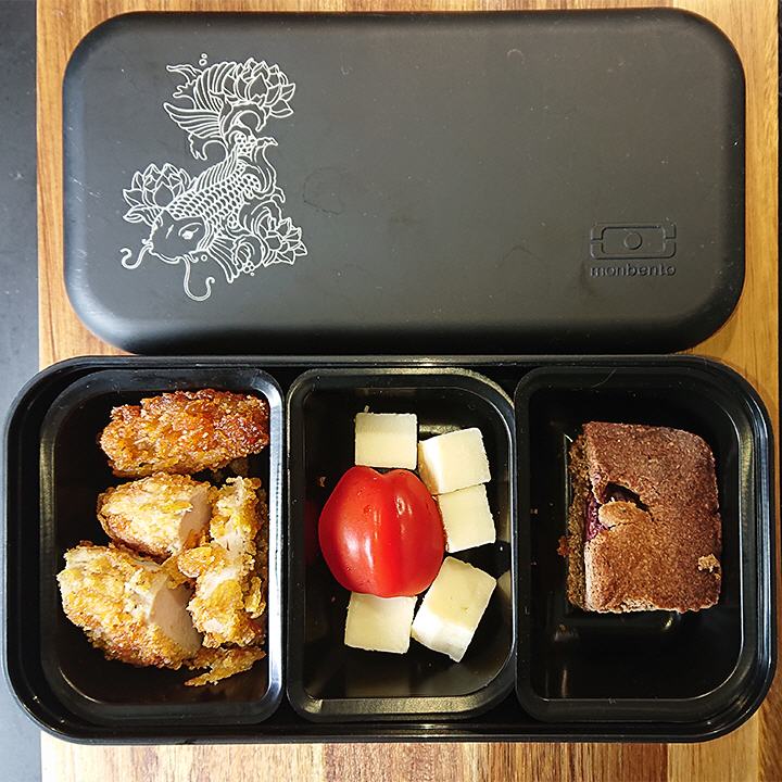 Sie sind hier: Startseite » Bentoboxen Bentobox mit Knusperschnitzelchen (19.05.2024) Bento am Sonntag für Hubby: Knusperschnitzelchen, Käsewürfel mit Minitomate und Schokoladen-Kirschkuchen