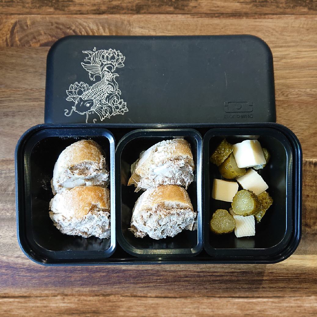 Sie sind hier: Startseite » Bentoboxen Bentobox mit Leberwurstbroten (12.05.2024) Bentobox am Sonntag für Hubby: Leberwurst-Minibrote, Gouda-Würfel und Cornichons