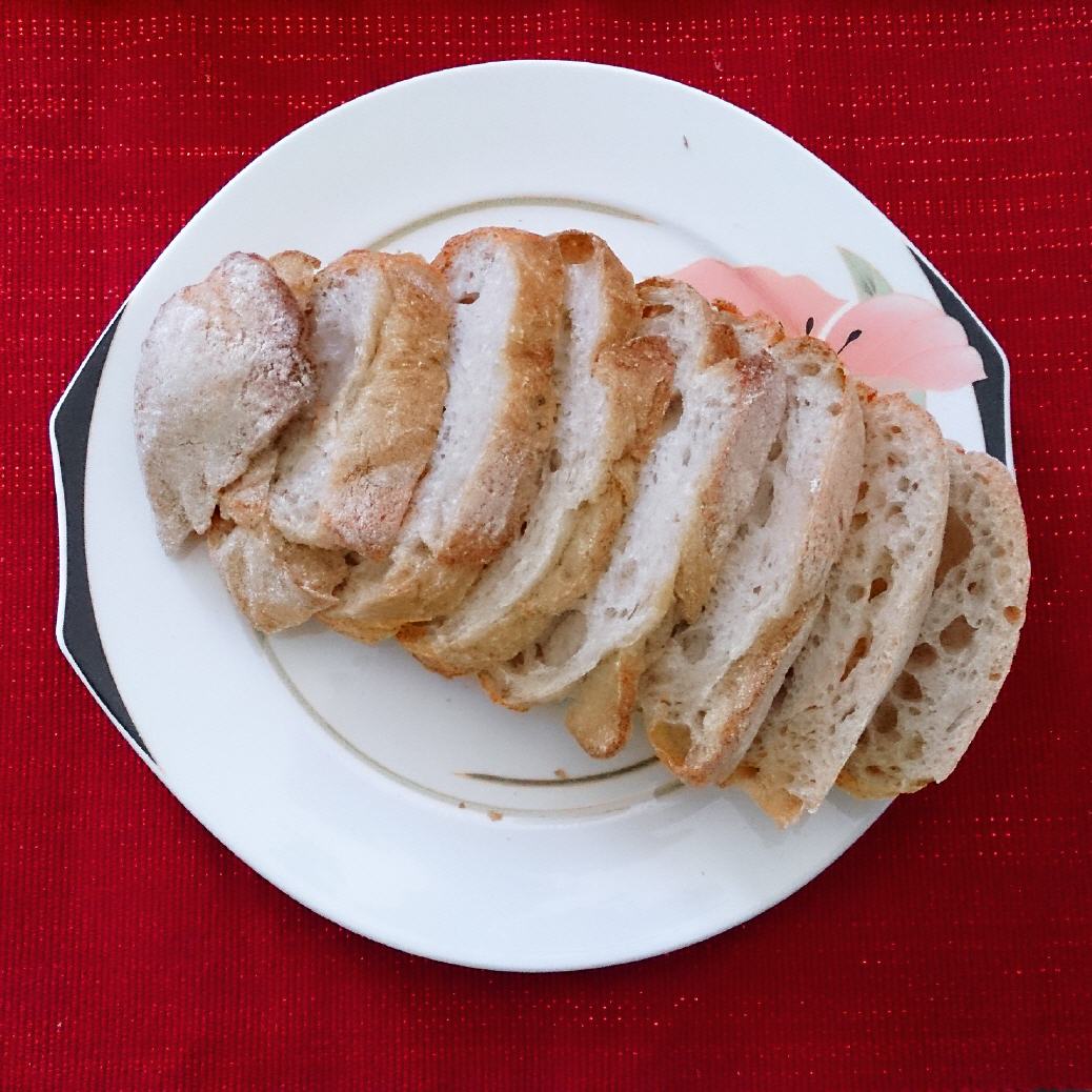 Cliff mag seine Brötchen lieber längs aufgeschnitten, wie es üblich ist. Ich schneide meine immer quer auf, als würde ich mir Kanapees (Weißbrotschnittchen) machen wollen. So kann ich es mit mehr als nur zwei verschiedenen Frühstückszutaten belegen.