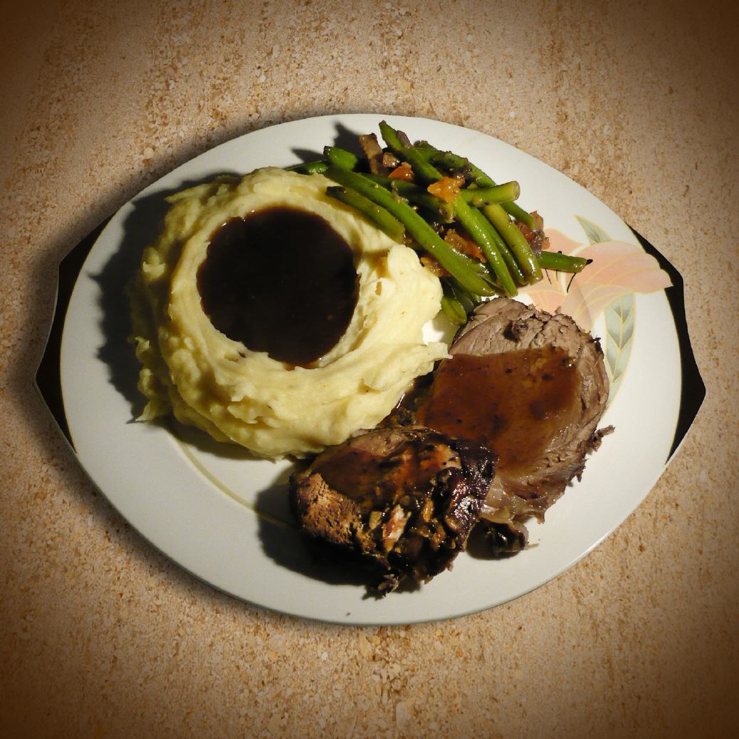 1 1/2 Stunden die Keule mit High erhitzt, danach auf Medium umgeschaltet. Die Keule wurde so ungefähr fünf bis sechs Stunden bei Niedrigtemperatur im Cooker gegart. Etwas kleiner wurde sie dabei schon, sie blieb aber sehr, sehr saftig und zart.