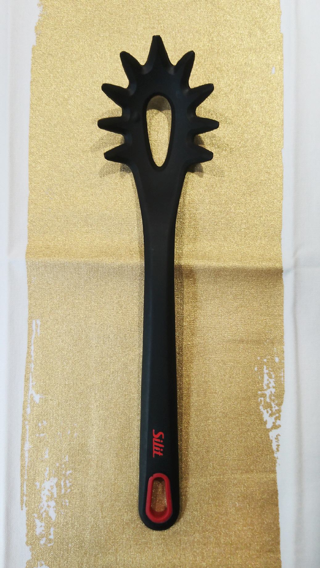 Diesen Spaghettiheber verdanken wir Cliff. Ich war ja der Meinung, dass wir so ein Tool für das Kochen gar nicht benötigen. Wir haben uns übrigens für einen aus Silikon entschieden, damit er unsere Keramiktöpfe nicht zerkratzt. Seit wir dieses Kochutensil unser Eigen nennen, löffeln wir so manches Zeug aus den Pfannen und Töpfen wie beispielsweise Kartoffelklöße, Blumenkohlröschen, Buletten – alles, was sich so angeln lässt. Dafür ist das kleine Helferlein wirklich praktisch und ich möchte es nicht mehr missen. Für die Spaghetti brauchen wir das Teil eigentlich gar nicht. Aber wo es dann schon einmal da ist, benutzen wir es natürlich auch, um die Spaghetti nach dem Abgießen aus dem Topf zu angeln. Früher haben wir das übrigens mit zwei Gabeln gemacht. Das hat auch wunderbar funktioniert.